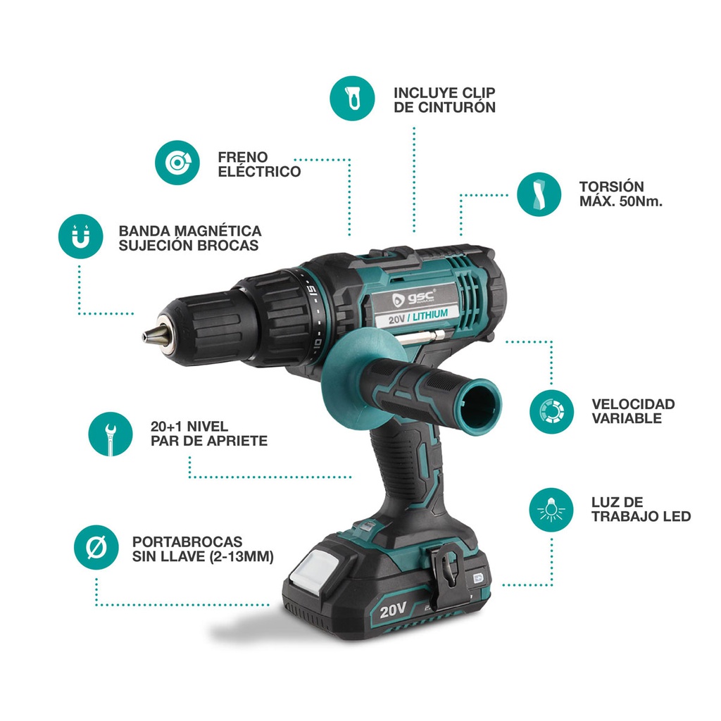 Con Banda magnética sujeción brocas y cambio fácil de taladro a destornillador y viceversa