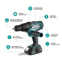Incluye 6 brocas de hormigón y 6 destornilladores. Maletín de transporte. Cargador 2.4A. Portabrocas sin llave (2-13mm). Clip de cinturón.