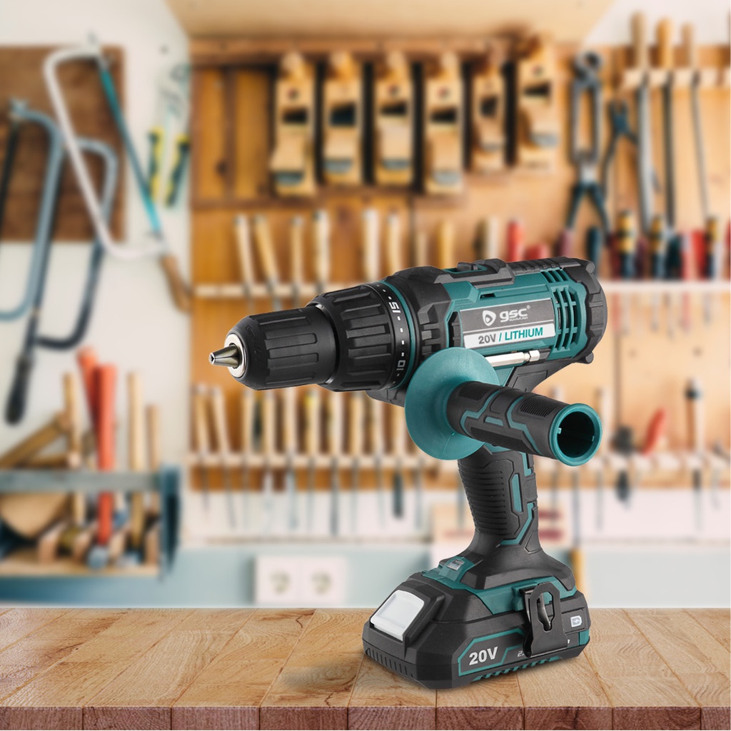 Kit taladro destornillador inalámbrico con percutor y dos baterías 20V