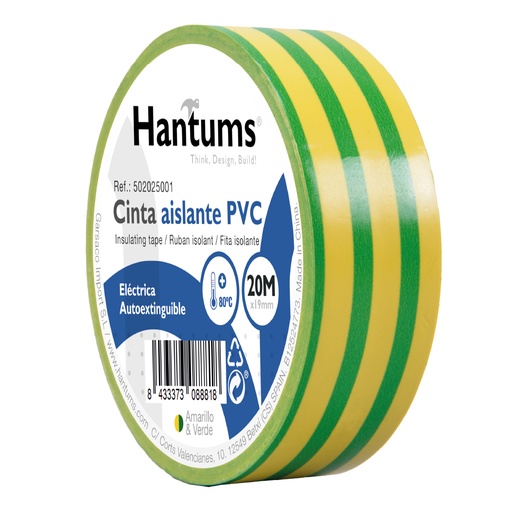 Cinta aislante eléctrica PVC 20M Amarillo y Verde - 10u retráctil